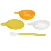 - Две глубоких тарелочки которые имеют большую, яркую ручку обучающую малыша держать столовые предметы.